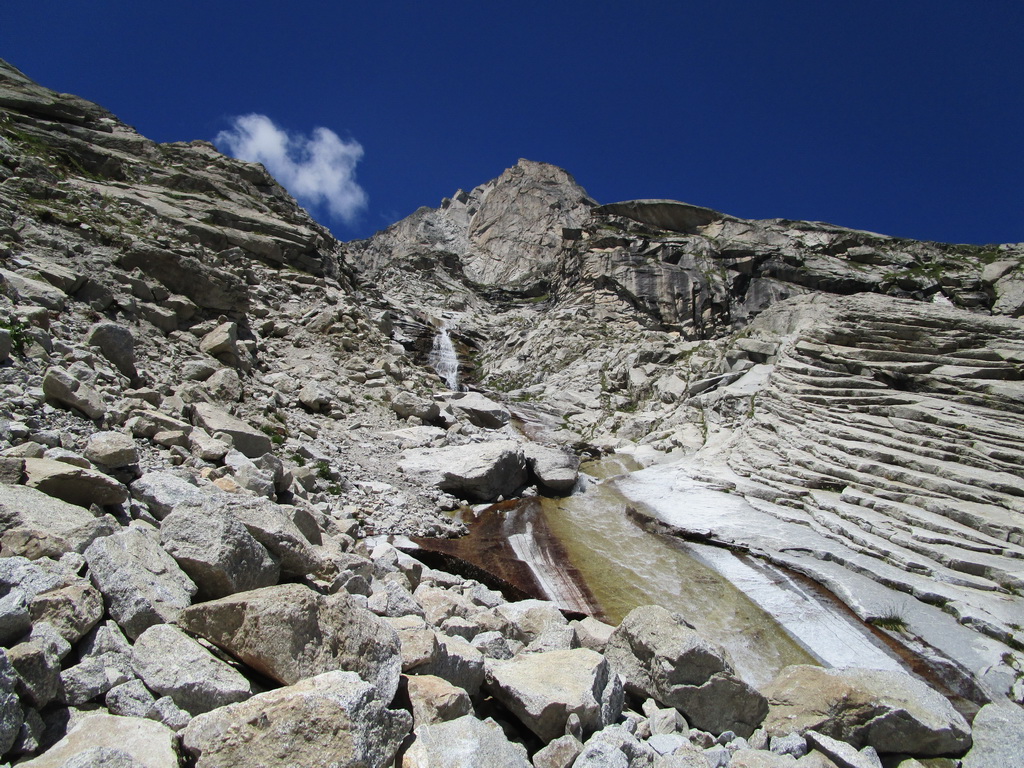 Zostúpim na začiatok hrebeňa ktorým som liezol hore do tzv. Pass Casnil Nord. Odtiaľto by bolo výhodné zbehnúť rovno dole do doliny čo sa mi aj darí...