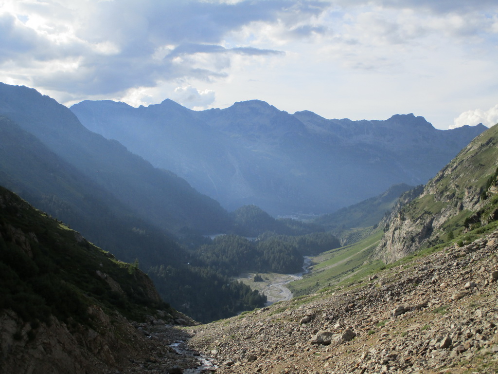 Pokračujem ďalej okolo miestneho hospodárstva so zvieratkami rôznych druhov. V týchto miestach vedie chodníček nádherným alpským lesom s lúčkami a mokraďami. Z lesa sa vynáram pri odbočke na passo Muretto. Tu les pomaly končí. Pokračujem doprava smerom do Val Forno. Neskôr sa napájam na nový a čerstvo značený chodník vedúci do sedla Casnil Sud. Chatár z Fornohutte Beat tu s pomocou pár kamarátov urobil veľký kus práce. Preložili starý chodník a z veľkej časti vytvorili nový.