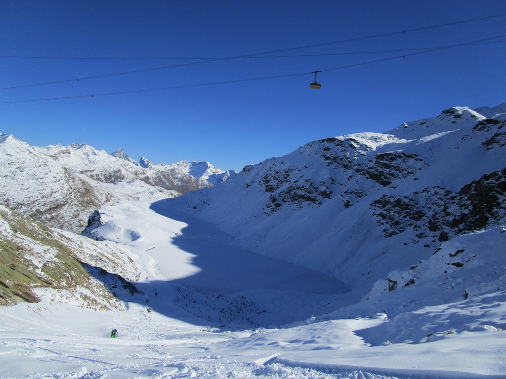 Je sobota 31. októbra a ja stojím na parkovisku pri lanovke na Diavolezzu (2093-2978). Túto lanovku rovnako aj zjazdovku púšťajú na začiatku sezóny v Engadine vždy ako prvú. Pozerám sa na skromnú snehovú pokrývku ktorá pokrýva zjazdovku končiacu predo mnou. Dnes z toho nič nebude, pomyslím si. Vtom okolo mňa prejdú prví dvaja, zapínajú lyže a začnú šlapať. Potom ďalší dvaja, o chvíľu zase... pozerám ešte raz na sneh, je tvrdý.