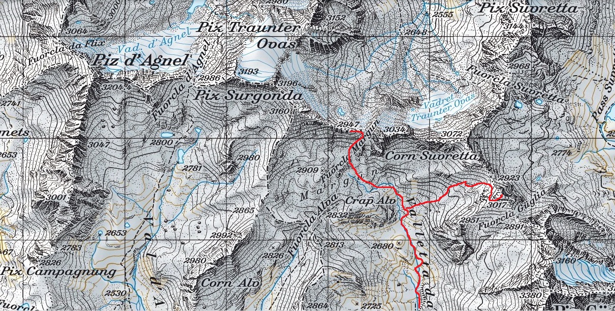 Parkujem na malom parkovisku na ľavej strane cesty kúsok pod Julierpassom v smere z Engadinu. Do údolíčka s názvom Valletta dal Guglia vedie stopa. Na parkovisku sú štyri autá. Je jasné, že to boli všetko skialpinisti.