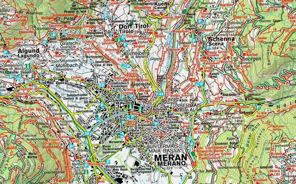 Merano je staré kúpeľné mesto v Južnom Tirolsku(Taliansko) neďaleko Bolzana. Centrum tvorí historická štvrť obklopená nádhernými parkami. Rozprestiera sa na úpätí kopca. Pokiaľ sa zrovna nechystáte nakupovať, tak rozhodne nevynechajte prechádzku Letnou a Zimnou promenádou. Z brehov rieky Passer môžete pri dostatku vody vidieť kajakárov. Potom je tu najkrajší park Gilfpromenade a ako píše sprievodca: jedna z najkrajších prechádzok vôbec - Tappeinerweg. Z centra mesta sa dá vyviezť starou sedačkou na vyhliadkový kopec.