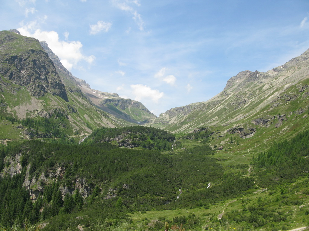 Passo Viola (2432m). Prichádzam na Taliansko/Švajčiarsku hranicu. Dávam len krátku zastávku a pokračujem ďalej. Zjazdujem dole po dôverne známej ceste údolím Val Viola. Nepokúšam sa vylepšiť zjazd singltrailom v údolí. Dnes mám toho pred sebou ešte veľa. Odbočku na Val Verva nachádzam v pohode, prechádzam cez most v údolí (cca1900m.) a začínam šlapať po štrkovej ceste smer passo Verva. Vždy keď som tadiaľto prechádzal v opačnom smere, pozeral som sa tam a dumal, čo asi môže byť za tými horami...