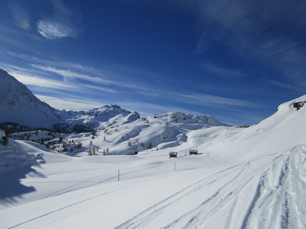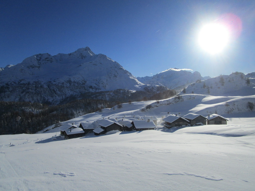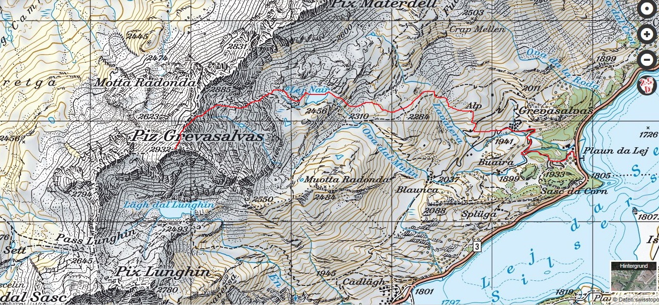 Na túru štartujeme od parkoviska pri jazere pred reštauráciou Plaun da Lei. Najprv šliapeme hore po cestičke v zime udržiavanej smerom ku letnému sídlu, skupinke starých štýlových domčekov s rovnakým názvom: Grevasalvas.