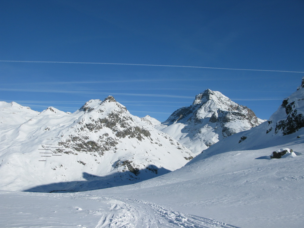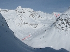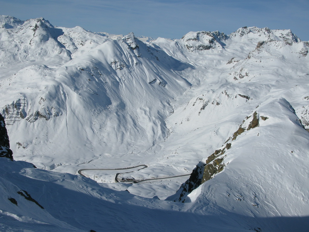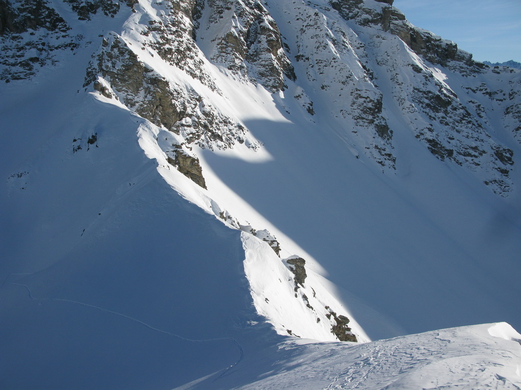 Ďalšie tipy: Z vrcholu Coluonnas vedú tri varianty už extrémnejších zjazdov (horná fotka). Uvidíte ich už z cesty až budete prichádzať v smere od St.Moritzu. Skúšať len v dobrých podmienkach!