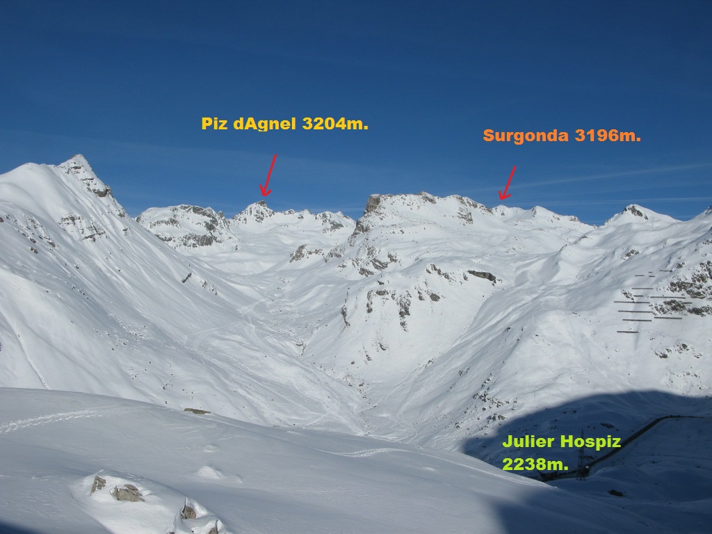 Oblasť okolo známeho zimného strediska St.Moritz ponúka obrovské možnosti na skialpinizmus. Veľkou výhodou je práve variabilita týchto možností. Dá sa tu naozaj vybrať túra v každom počasí a výhodou je, že aj v slabších zimách sa pri snehovej biede dá nájsť niečo pekné. Zatiaľ čo zima 2014/15 začína veľmi slabo, čo sa snehových podmienok týka tak práve oblasti okolo Julierpassu sa to akoby netýkalo. Na túry sa dá vyrážať od auta zaparkovaného na niektorom z parkovísk pri hlavnej ceste spájajúcej Engadin so Švajčiarskom. Tejto oblasti by sme mohli dať kľudne prívlastok tajný skialpový raj.