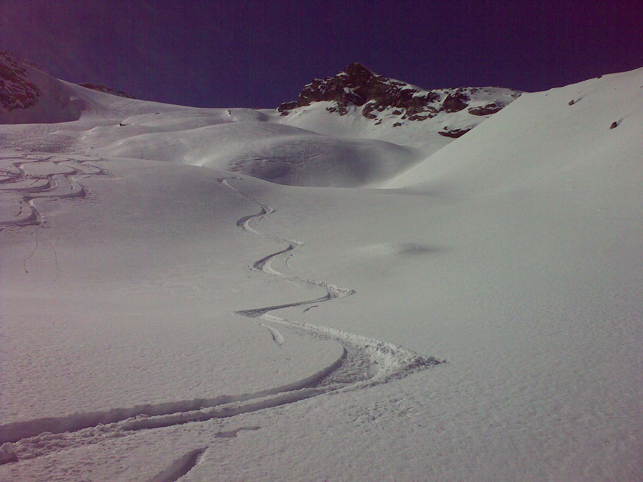 Záverečných, asi 100 výškových metrov, sa šľape už bez lyží. Podmienky boli dobré, takže bez mačiek. Celá túra je technicky nenáročná, kondične sa treba pripraviť na cca 1600 výškových metrov. Momentálne podmienky sú tu nasledovné: asi 40 cm nového snehu a v doline dosť teplo na túto ročnú dobu ale snehové podmienky hore ideálne, po 3 dňoch sneženia sa viditeľnosť zlepšuje a plánujeme ďalšie veci v okolí (je toho dosť viď. foto).