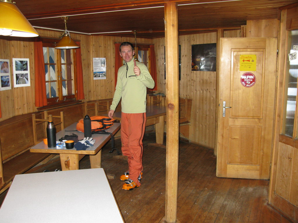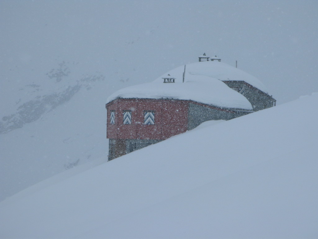 Hotel a reštaurácia Roseg Gletscher (2000m.) je východiskovým miestom na túry do týchto hôr. V horách však je aj množstvo horských chát. Na druhý deň sme bohužiaľ nemali ideálne počasie a tak sme si dali dva výšlapy, vždy po chatu. Bol som užasnutý nad množstvom snehu všade naokolo. Prišiel som totiž práve zo Slovenska, kde zúri už druhý rok po sebe strašne slabá zima.