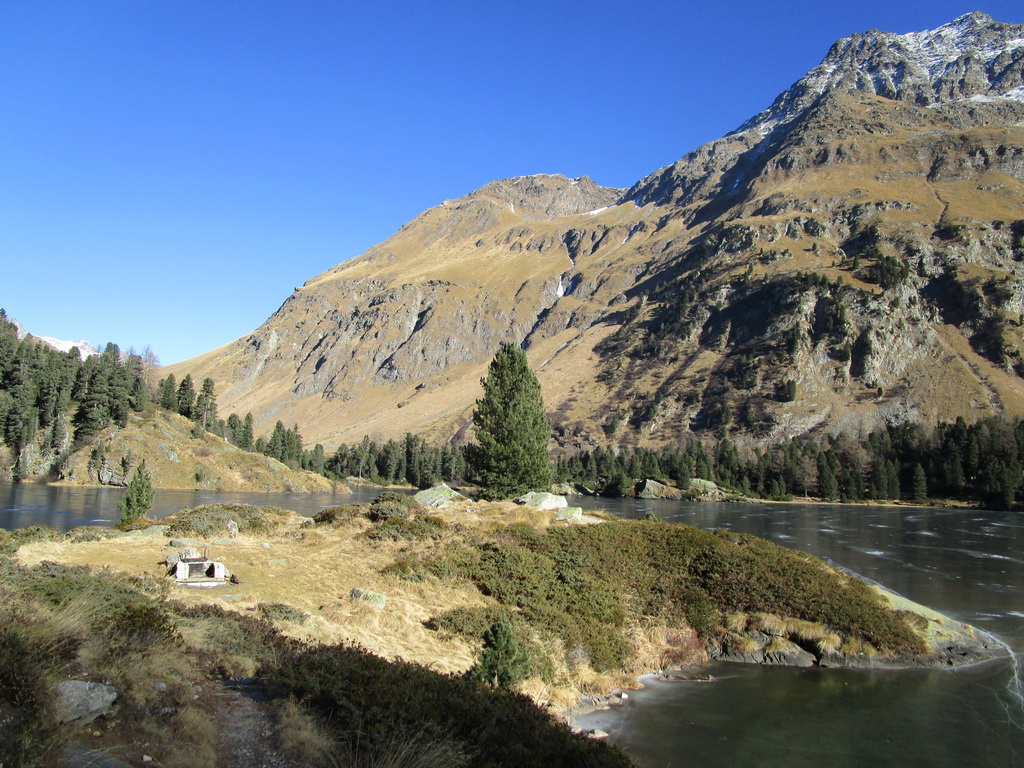 Z parkoviska po asfaltovej cestičke smer Lei Cavloc k asi najkrajšiemu jazeru celého Engadinu. Oplatilo by sa zobrať bajk a zamknúť si ho za jazerom pri miestnom hospodárstve (prasiatka, somáriky a tak). Odtiaľto už jedine peši.