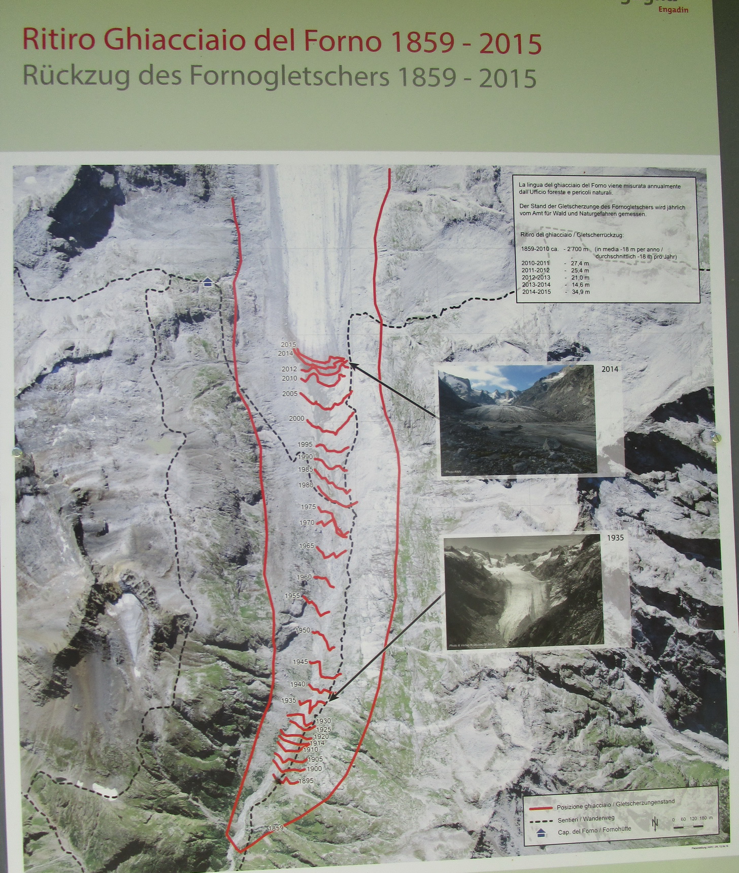 Počas chatárčenia na Forne vybudoval už tri modré reťazami zaistené trasy na tri vrcholy a premiestnil modrú značku na passo Casnil a samozrejme pretrasoval aj prístupovú cestu ku chate, tú musí po každej zime opravovať...
