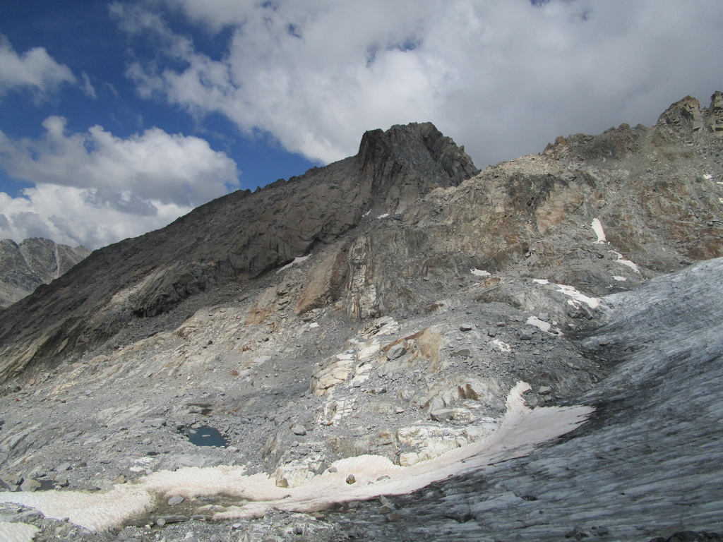 Uzatváram okruh pri chate. Ľadovcový tunel ešte stojí ale už sa mi nechce ísť až ku nemu spraviť fotky. Horúčava urobila svoje. Dopĺňam tekutiny, čaká ma ešte návrat dole.