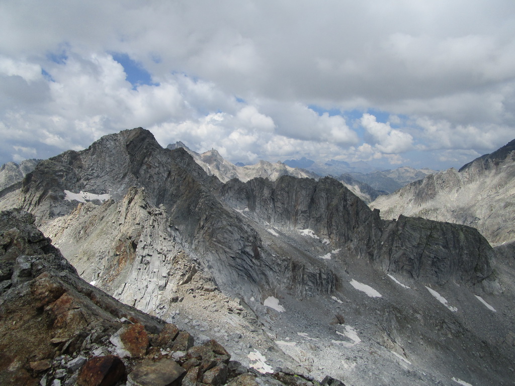 Výhľady sú parádne na všetky strany a je veru čo obdivovať. Na vrchole sa trošku venujem foteniu, rovnako aj pod ním pri návrate dole. Z Passo Vazzeda sa prehupnem na taliansku stranu. Po červenej značke sa dostanem až ku chate Grande Camerini. Na terase posedáva zopár talianov. Pri koláči s kolou sa dáme do reči. Dozvedám sa, že chata nemá stáleho chatára ale že ju prevádzkujú dobrovoľníci z horolezeckého oddielu. Striedajú sa každý týždeň, prípadne dva...