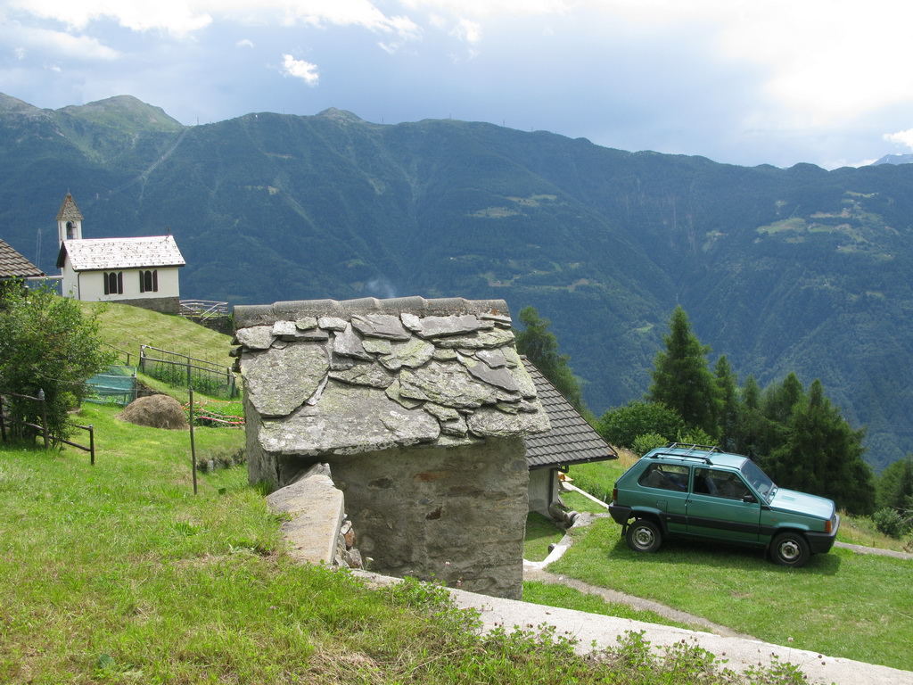 Odtiaľto už vyrážame na bajkoch. Mostom ponad rieku a hneď za ňou doprava. Po úzkej asfaltke pomedzi domčeky a sady až do Vervia. Tu sa začína naše stúpanie. Po asfaltových serpentínach prevažne v lese stúpame až k usadlostiam Susen. Tu sa už otvárajú parádne výhľady. Doplňujeme vodu ktorá tečie prakticky pred každou usadlosťou a šlapeme ďalej smer Rifugio Schiazzera.